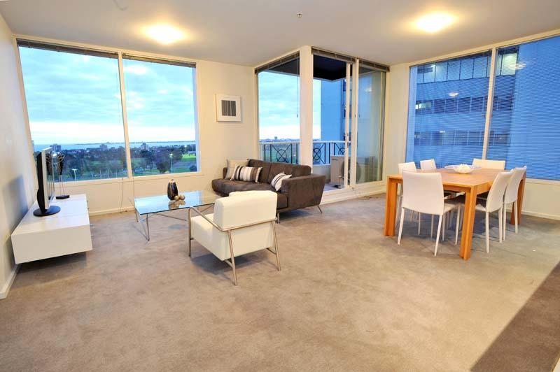 | 11th floor Apt with generous bathrooms, vast open plan living/dining/kitchen with SS appliances,Uninterrupted views over Albert Park lake to Port Phillip Bay, St Kilda Junction oval. Further features incl laundry, reverse cycle air con, pool, gymnasium & shared BBQ area. Place is fully furnished except for the room to be rented.